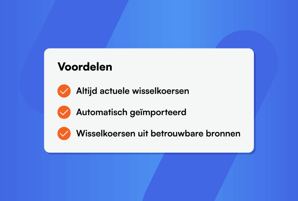 - Synchroniseert de valuta dagelijks met jouw Exact Online-omgeving